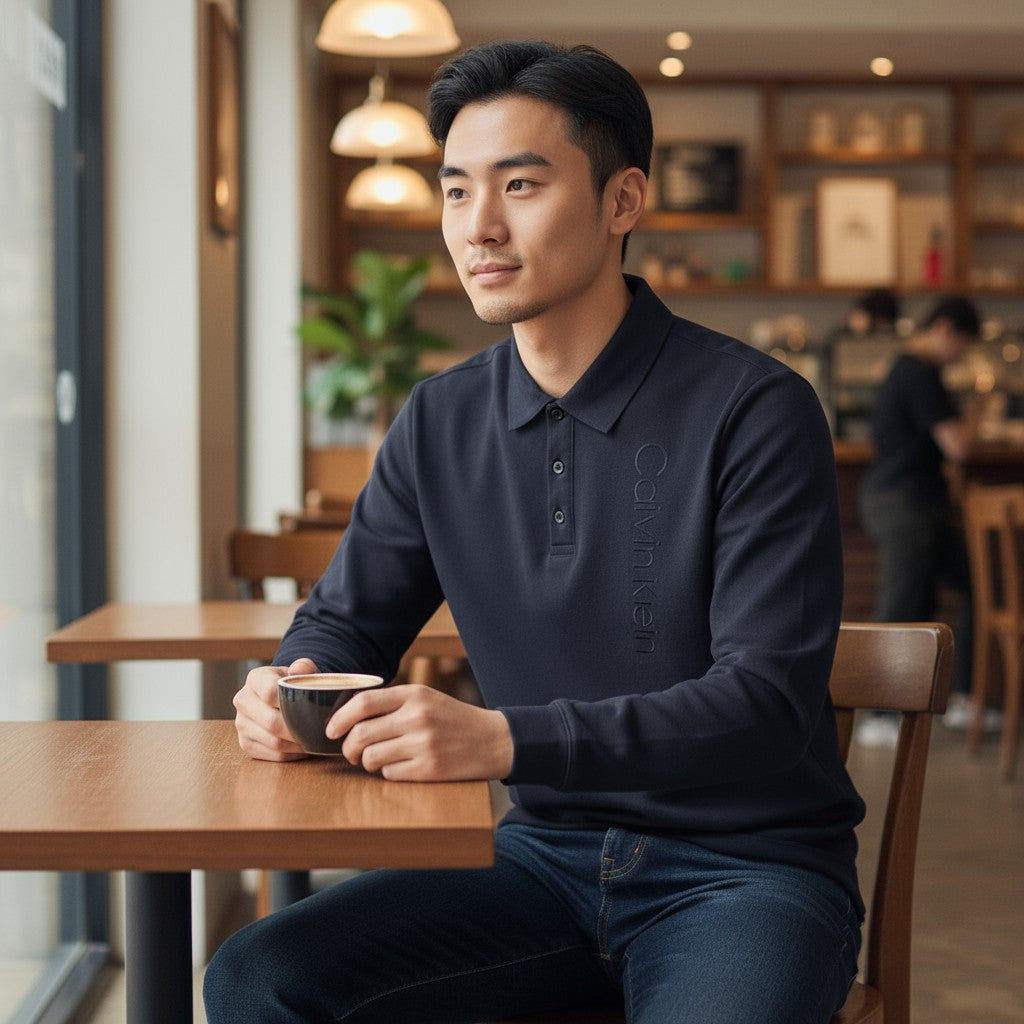 Calvin Klein Lacivert Uzun Kollu Polo Yaka Premium