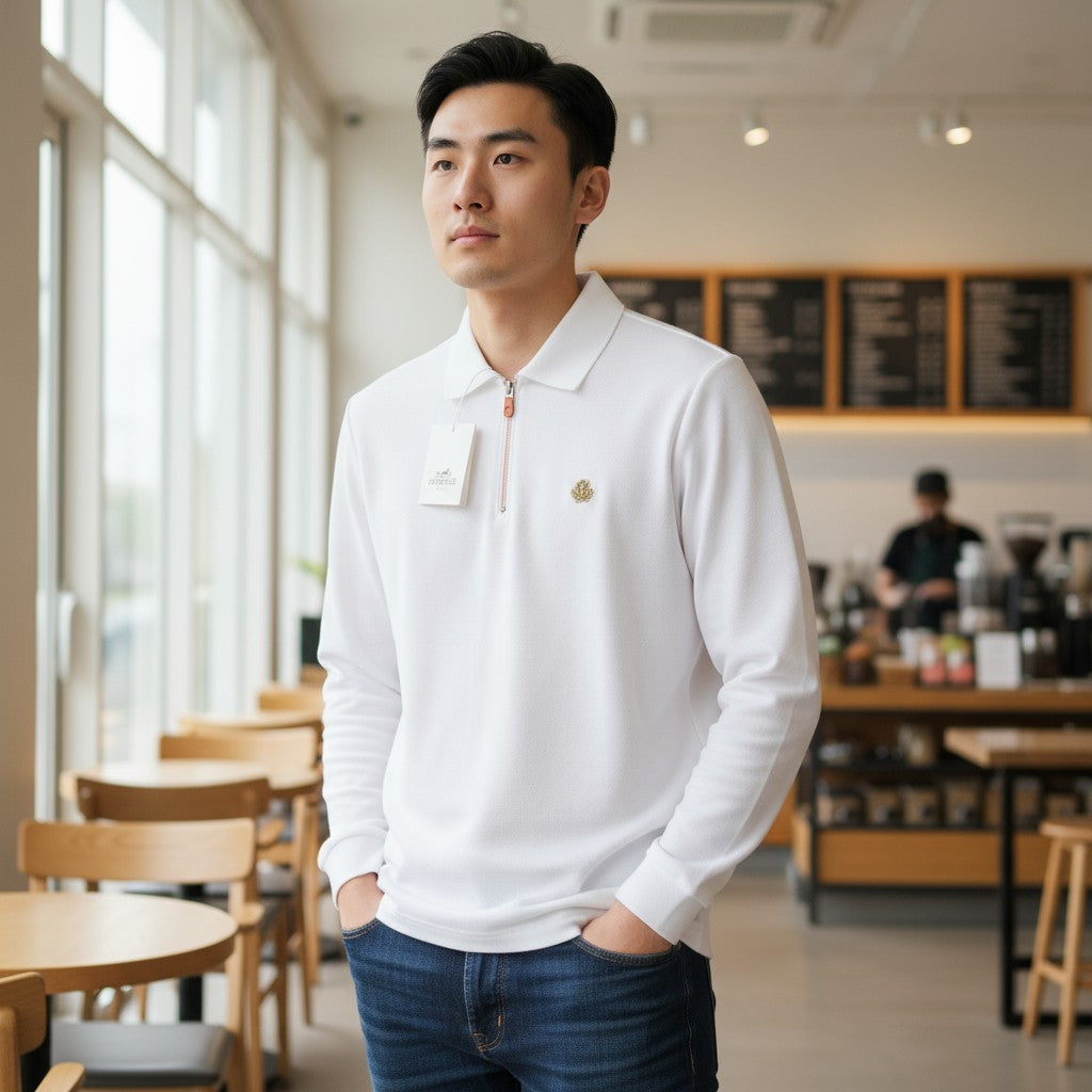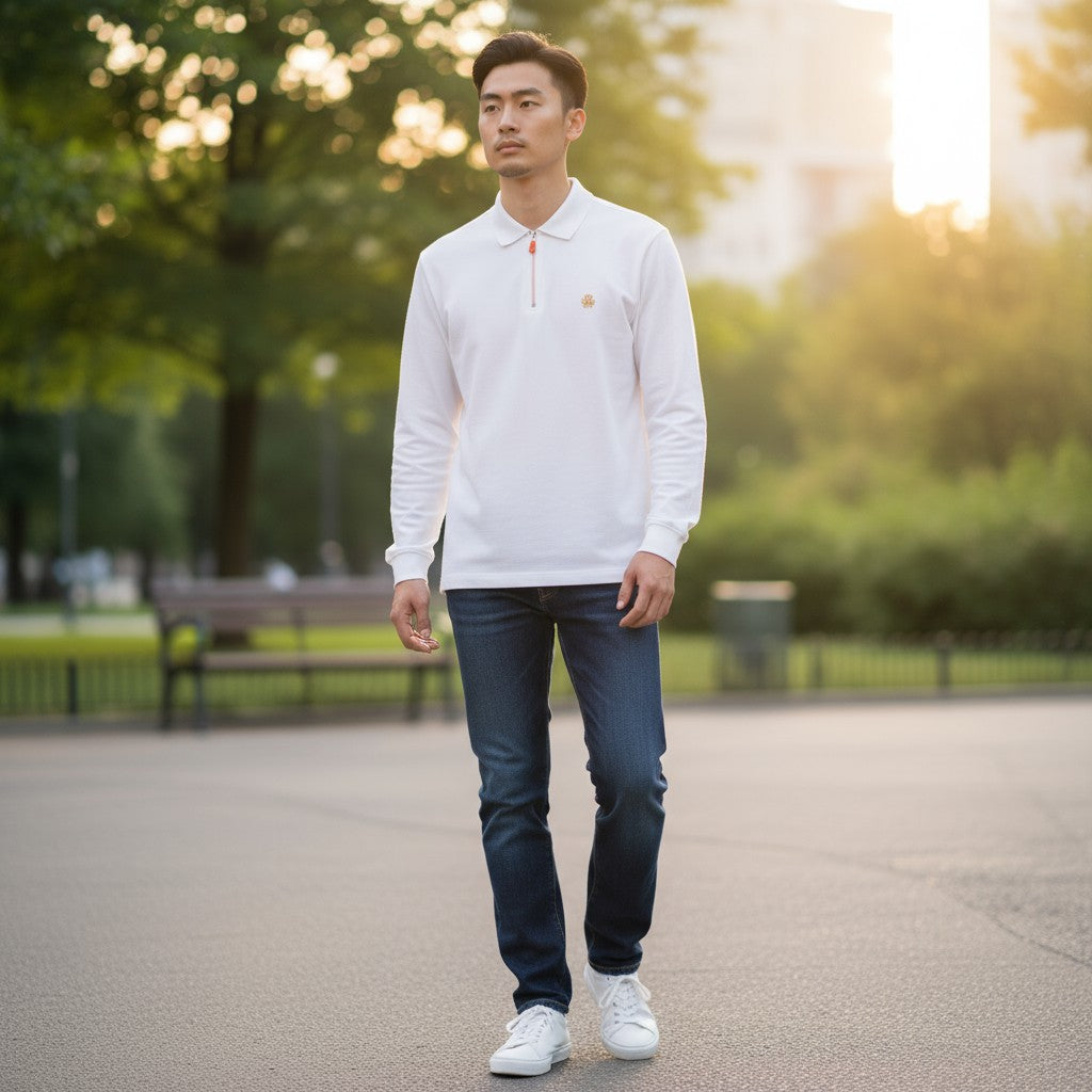 Hermes Half-Zip Polo Uzun Kollu (Beyaz)