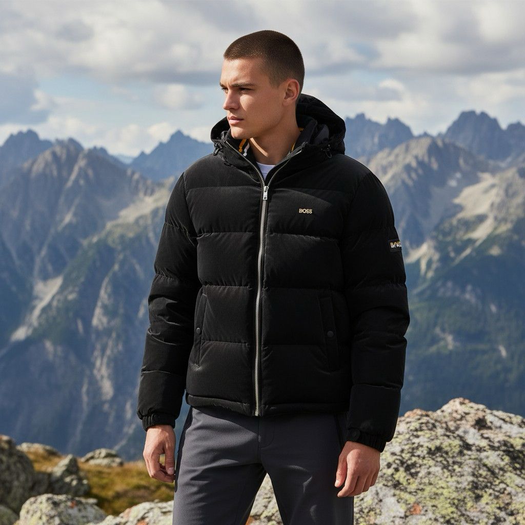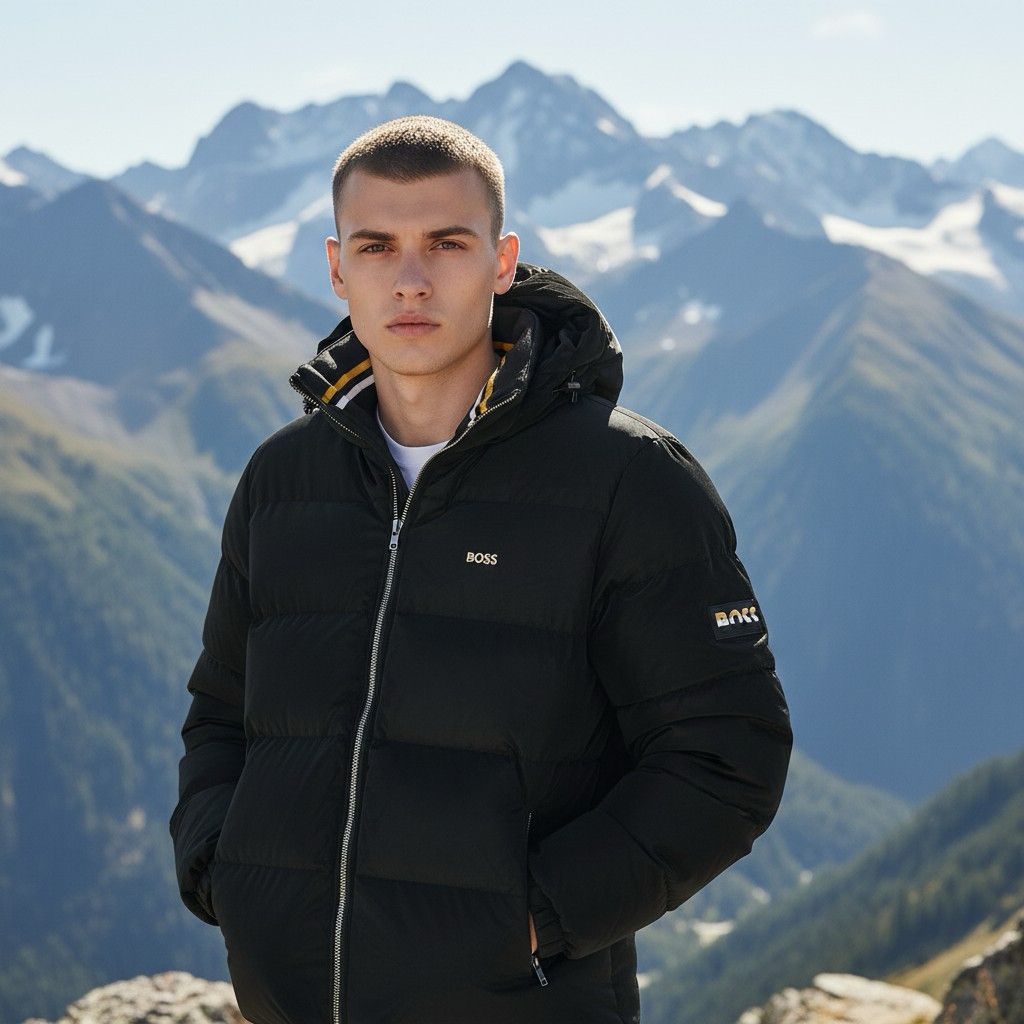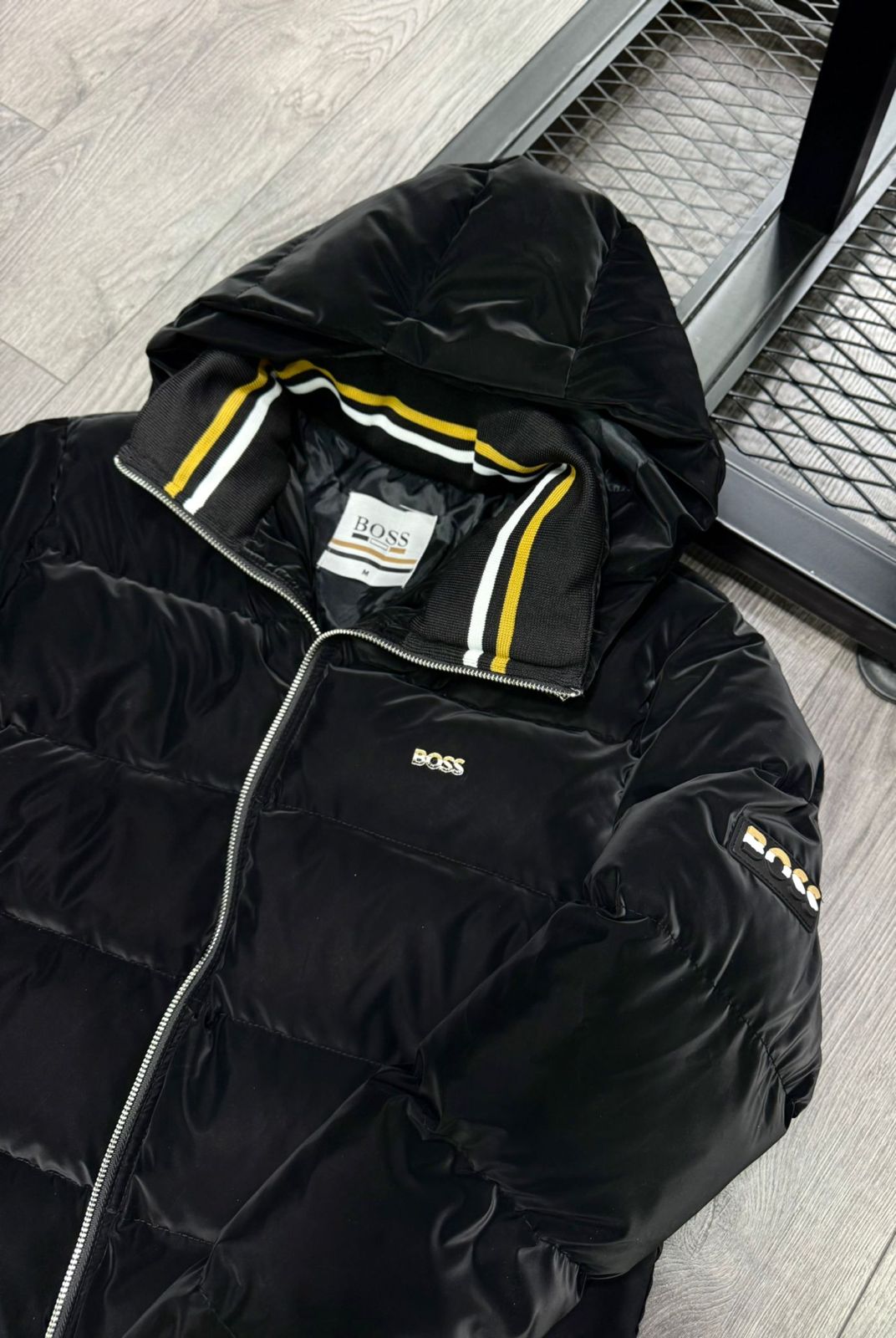 Siyah Mat Saten Kapüşonlu Şişme Mont – Luxury Edition
